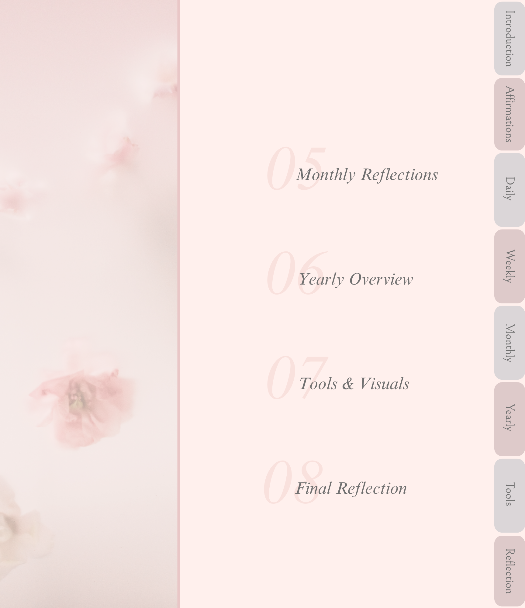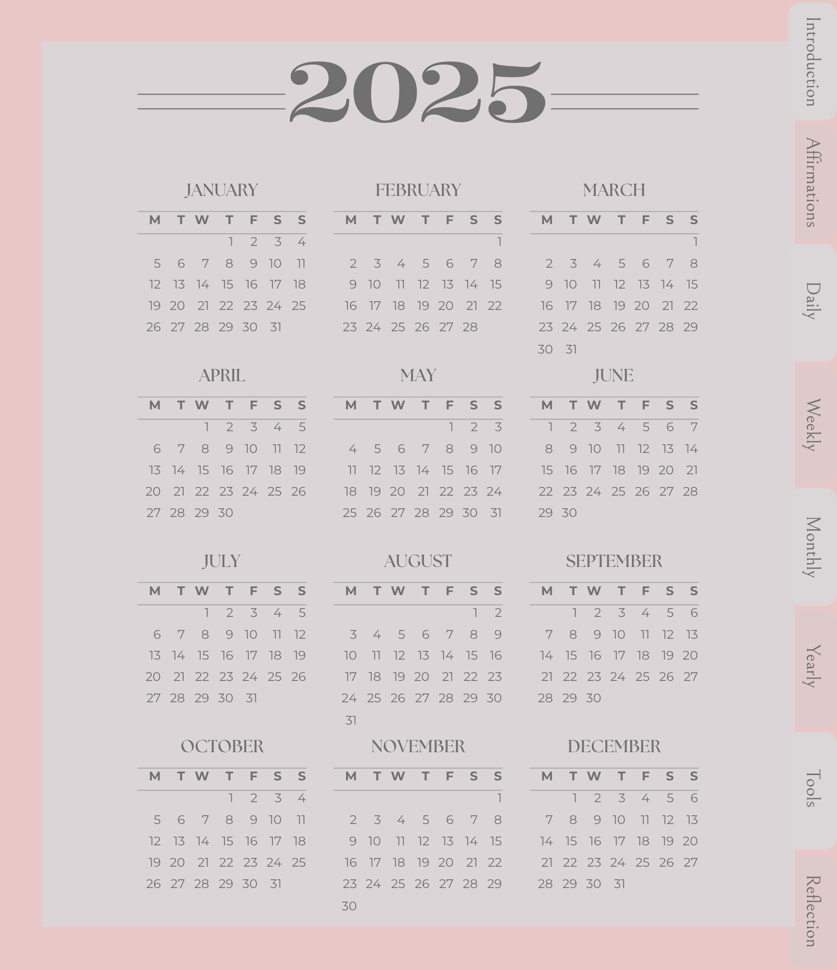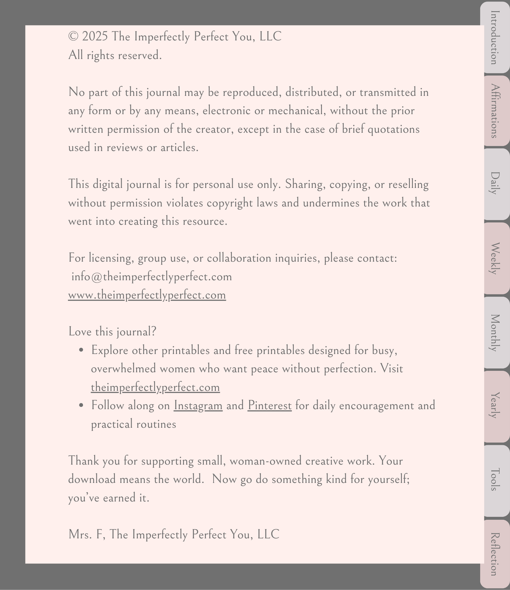 A beautifully designed 3-month gratitude journal to help you reflect, reset, and reconnect. Includes 158 pages of daily, weekly, monthly, and yearly prompts, visual trackers, 84 prompts and space to write freely.