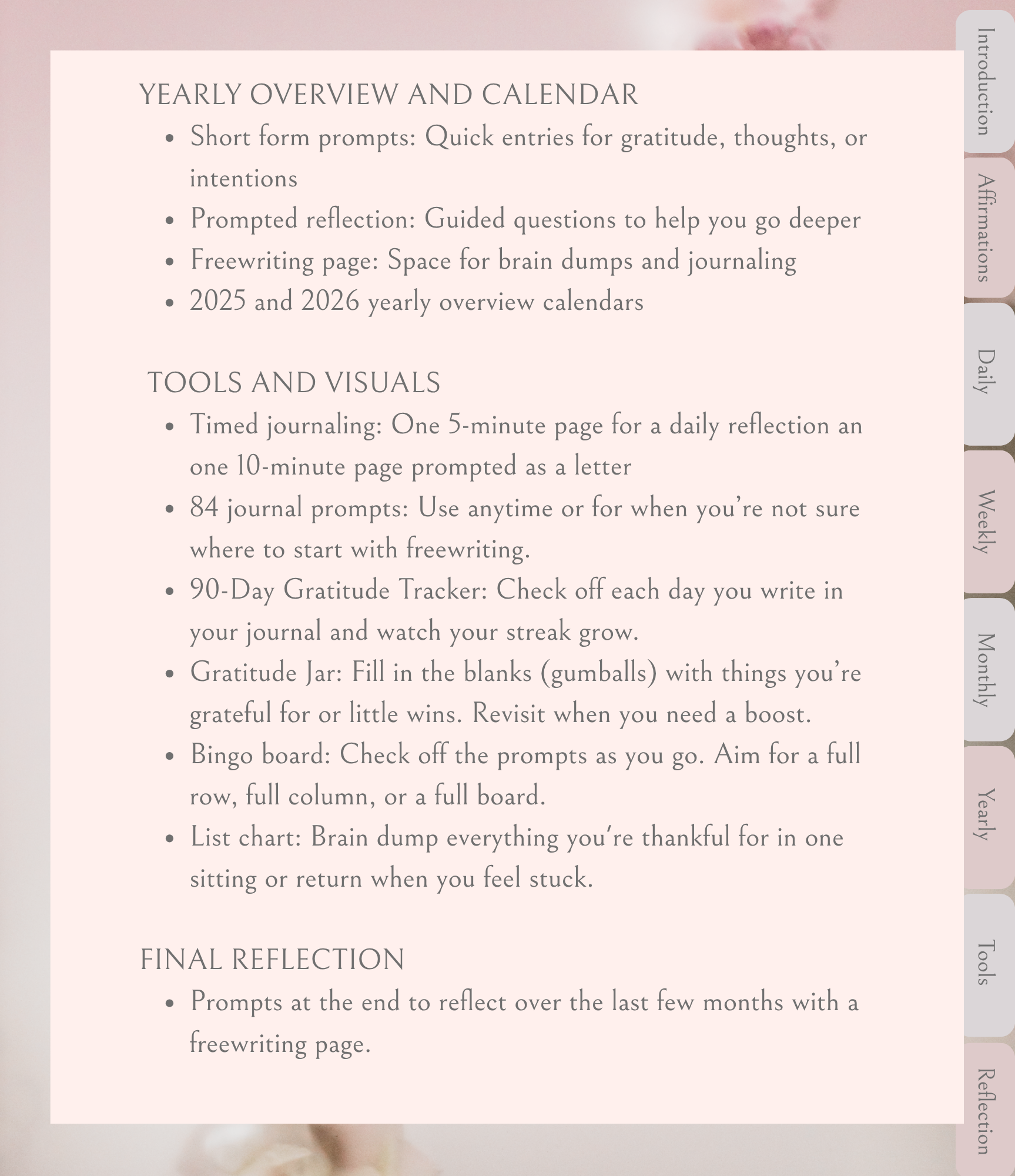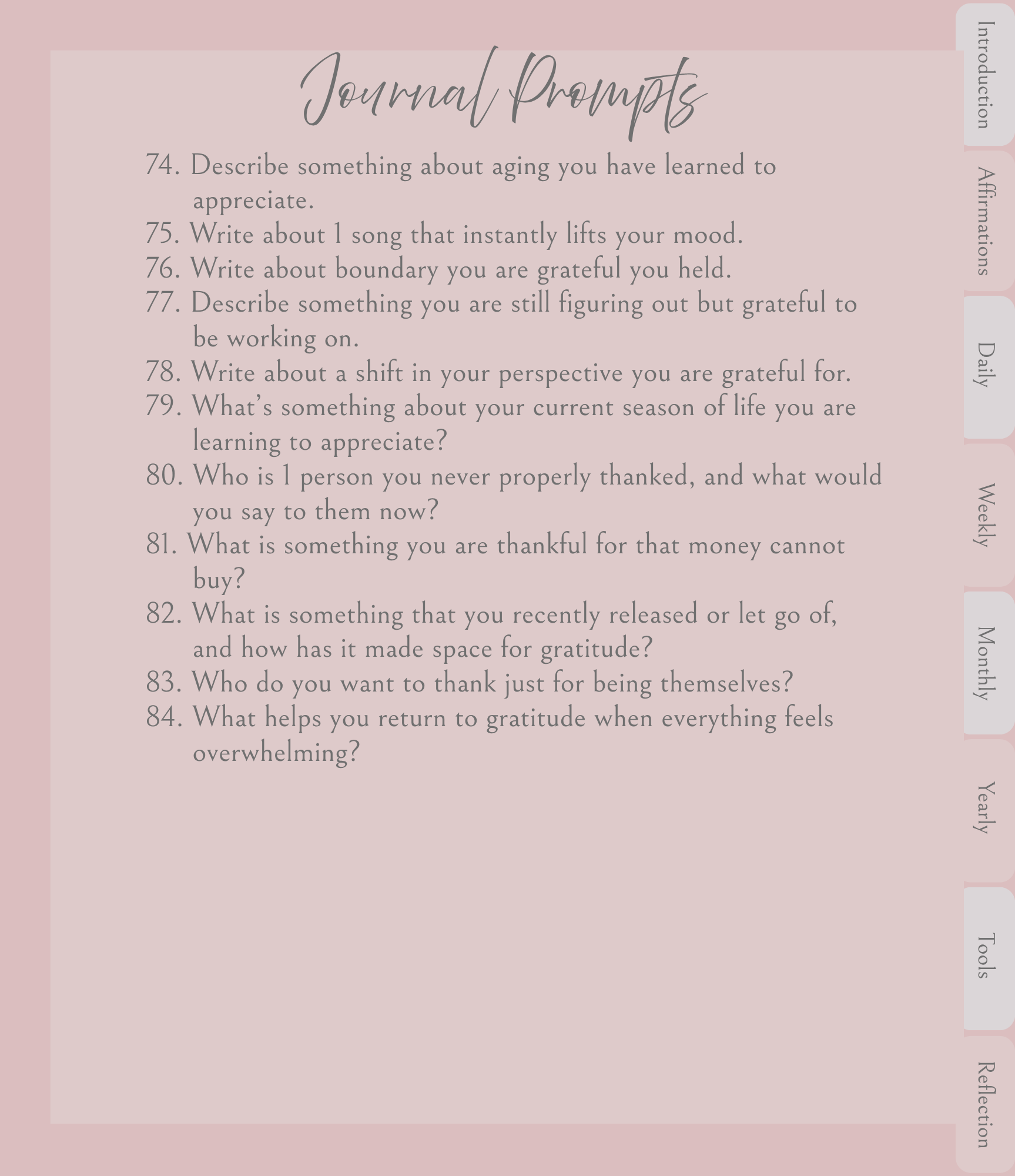 - Daily, Weekly, Monthly & Yearly gratitude prompts